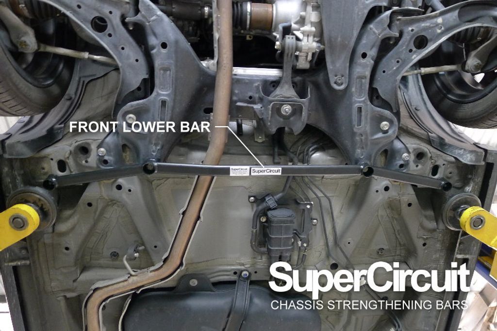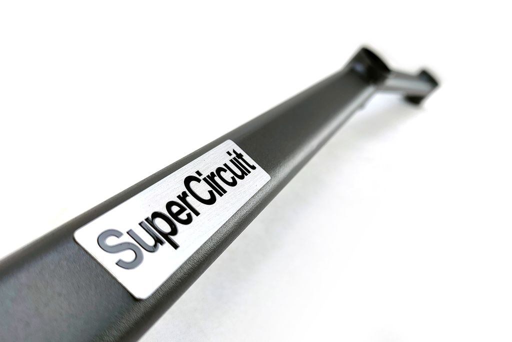 - Works together with the SUPERCIRCUIT Front Strut Bar to hold both front upper suspensions and lower suspensions in geometry and optimum front chassis strength.